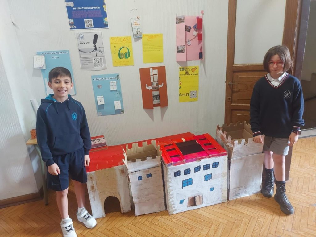 En Primaria, mientras, se crearon maquetas que replican la estructura del Santo Ángel. La decoración corrió a cargo de los escolares, que aprendieron nociones sobre la historia del colegio. «Le dimos todo el detalles que pudimos, aunque la parte del campanario no la hicimos porque era muy difícil», cuenta Gala Tamargo, de sexto. «Nos ha servido para saber las etapas del cole, cómo se creó, los materiales, cómo se pinto, etc.», señala Álvaro Bueno, de quinto de Primaria. «Algunas cosas nos las han prestado madres o abuelas que han estado en el colegio», apunta Claudia López mientras sostiene un velo que ejemplifica esa faceta de la exposición.